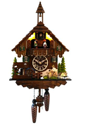 Kuckucksuhr mit Beleuchtung und Lagerfeuer