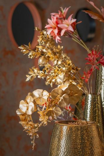Bronzene und Goldene Vasen bestückt mit Kunstblumen in belebenden leuchtenden Farbtönen stimmen uns auf einen goldenen Herbst ein.