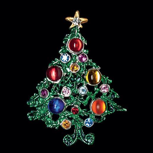 Brosche Weihnachtsbaum mit bunten Kristallsteinen - von Hand bemalt