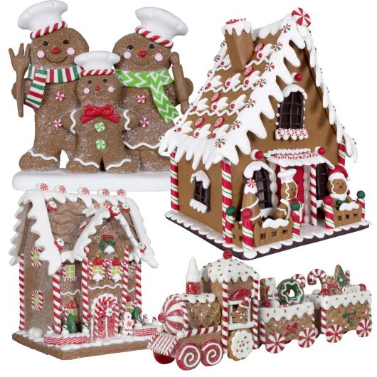 Wir führen Lebkuchenhäuser mit und ohne LED-Licht, Lebkuchenzüge, Lebkuchenfiguren und Baumschmuck in Lebkuchenoptik in großer Auswahl und allen Preisklassen.