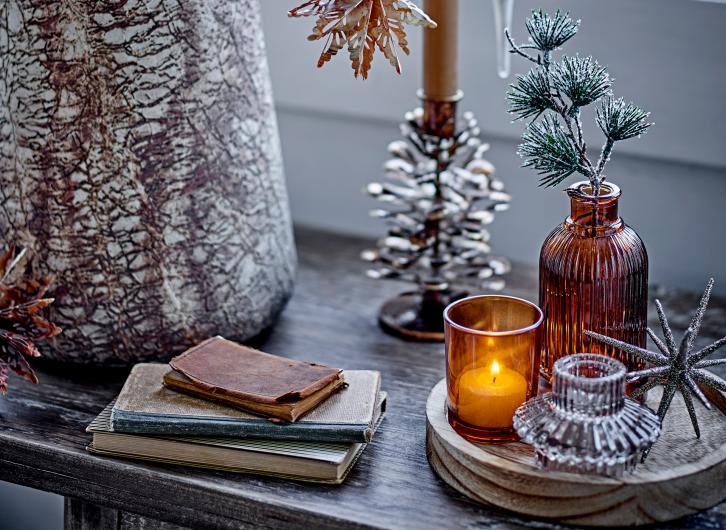The Sanga Tray w/Votive by Bloomingville is an elegant and versatile choice for Christmas decor. Crafted from wood, this tray is beautifully adorned with atmospheric votives, a star embellished with silver glitter, and a vase holding an artificial spruce branch. Adding to its versatility, one of the votives can be reversed to serve as a candle holder. With its timeless design, this set is perfect both as a stylish hostess gift and as a decorative element in your home.