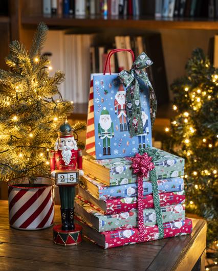 The Nutcracker dressed like Santa Claus for gift and decorations for adults and children.