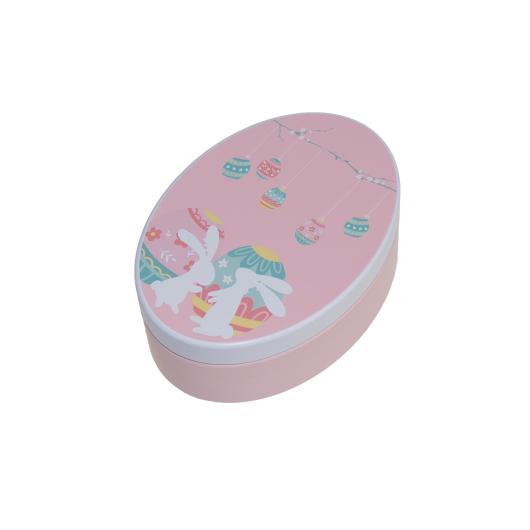 Oval design tin with Easter decor, for sweets or gifts, printed tinplate.