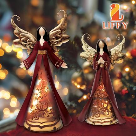 Pretty glass and metal angels with string lights inside the skirt. They can be placed in living room, in hallway, or in bedroom. During the festivals, they were nice to be put on the fireplaces, on the tables, or on the cabinets to light up your Christmas. They were also beautiful to be used as daily decorations, to bring a touch of warmth to your life.