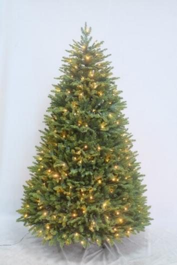 Real-Looking Pop-Up Pine Tree with 800PE/PVC Mixed Tips and pre-lit with warm white LED lights. LED Bulb counts can be customized. This style of tree can also be supplied with pre-assembled decorations and dressings.